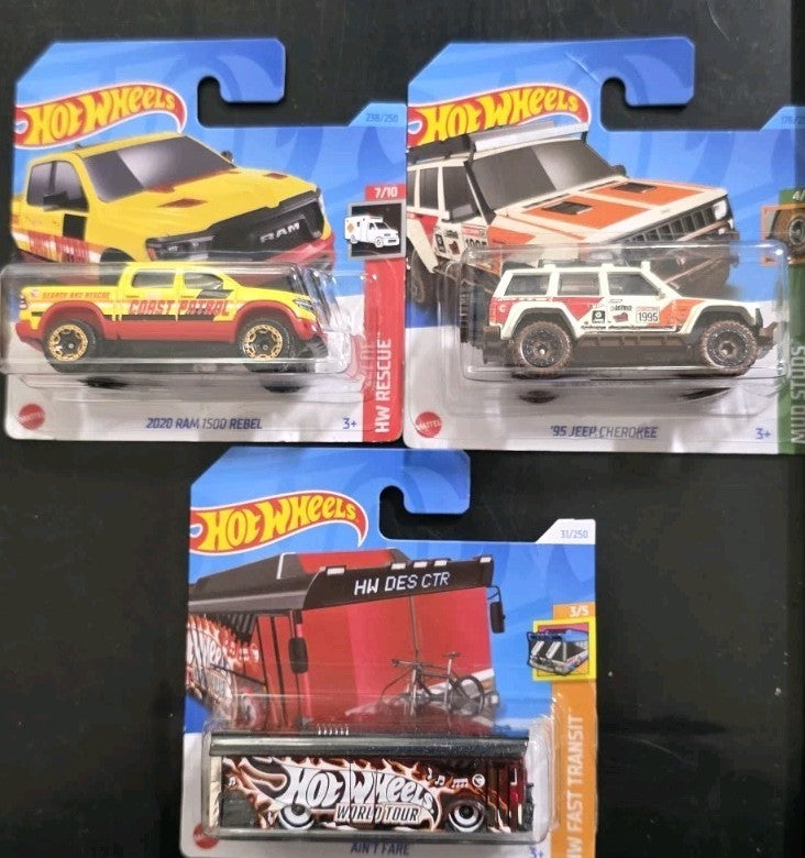 Hot Wheels 3 X Cars Treasure Hunt Bundle Ram Rebel, Aint Fare, Jeep Cherokee