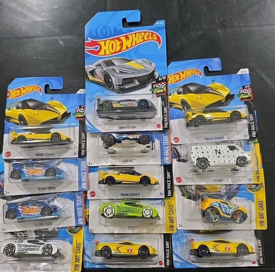 This Hot Wheels bundle includes 13 cars with a mix of short and long cards, featuring a variety of vehicle makes and designs. The die-cast cars are in 1:64 scale and come in multiple colours, reflecting the signature Hot Wheels theme. Made in Malaysia, these cars are perfect for collectors or enthusiasts looking to add a diverse range of vehicles to their collection.